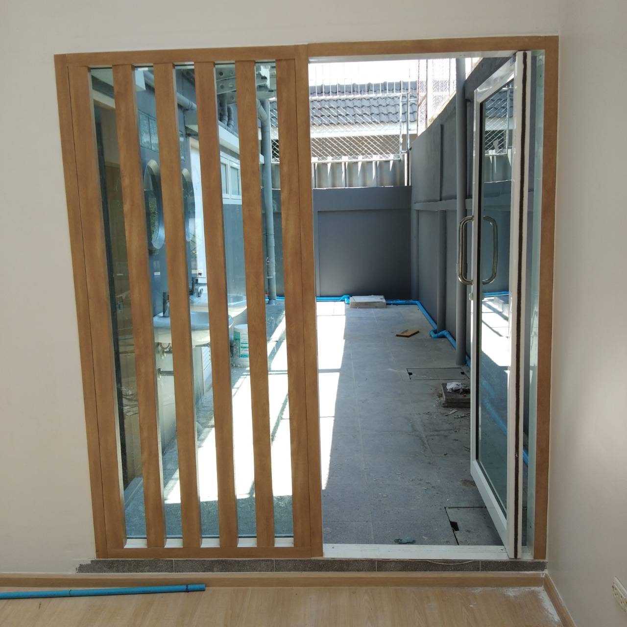 หุ้มปิดวงกบอลูมิเนียมและระแนงติดทับบนกระจก